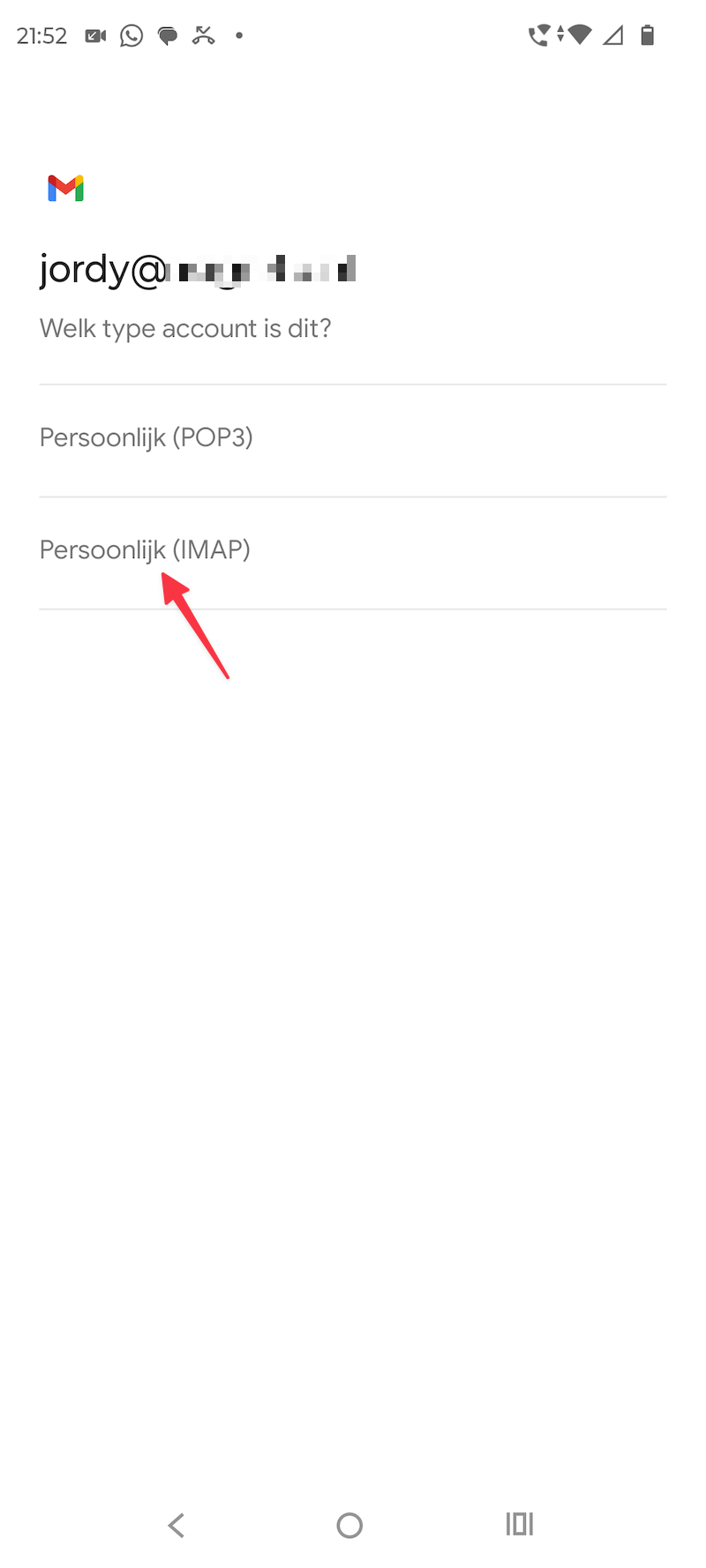 Stap 7: Kies voor 'Persoonlijk (IMAP)'