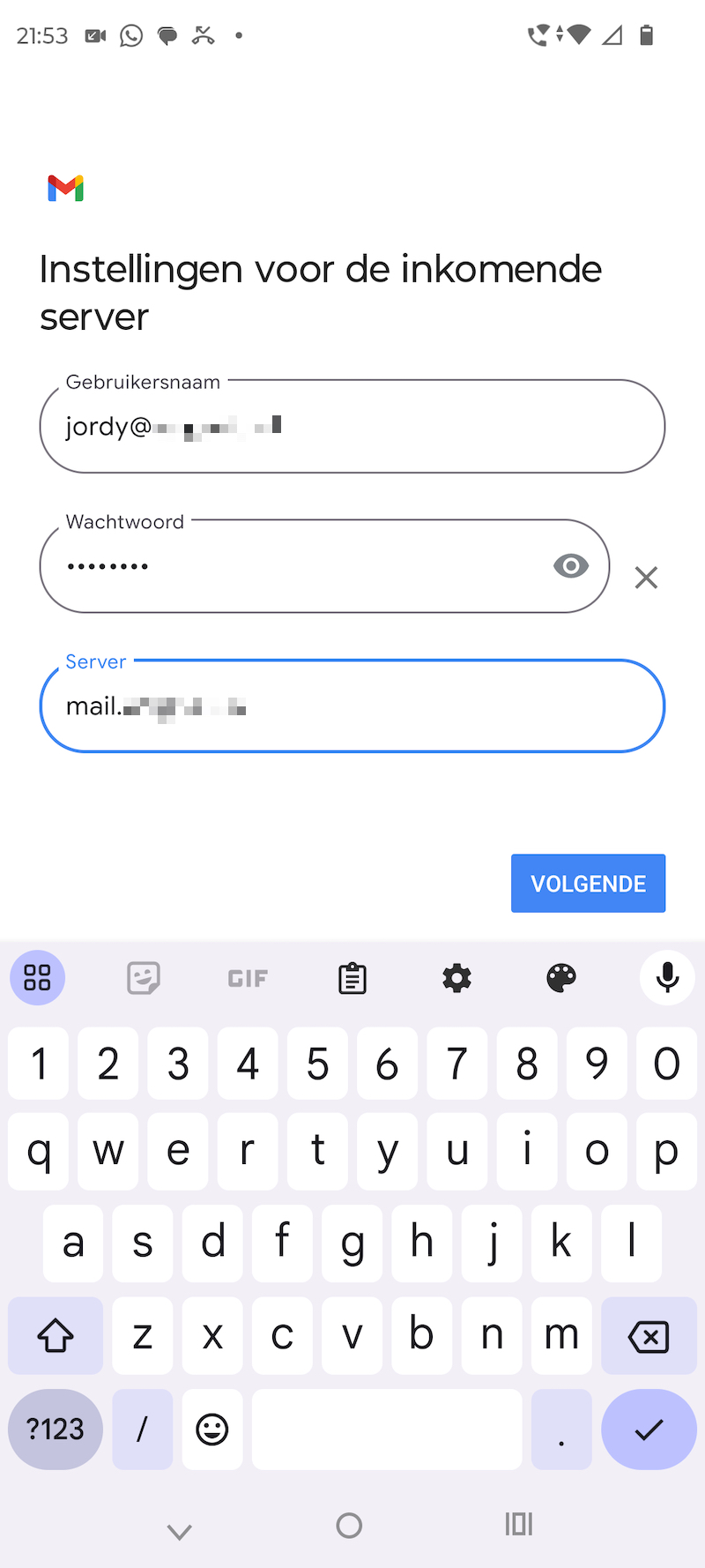 Zorg dat je alle benodigde gegevens, zoals de IMAP-server, gebruikersnaam en wachtwoord bij de hand houdt!